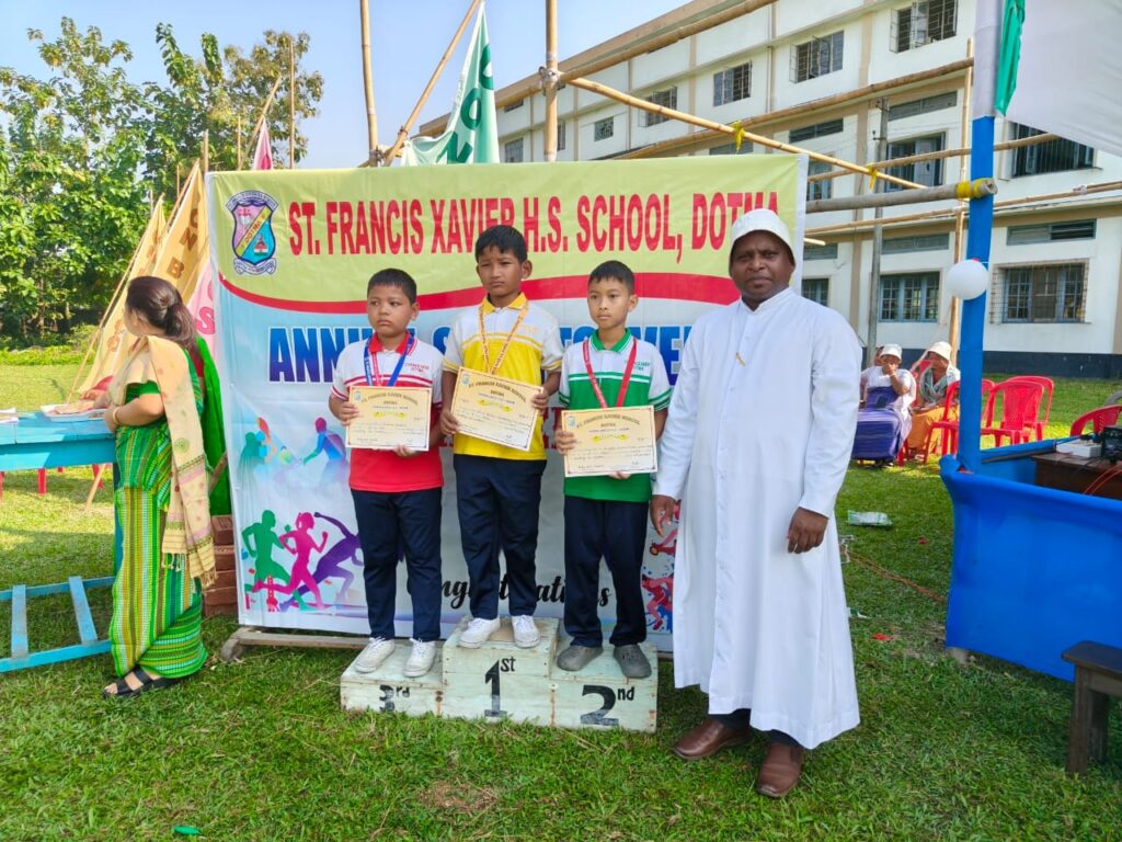 The program continued with a March Past Drill and an energetic Aerobics Dance performed by students from all four houses. Fr. Sebastian Edathumparambil SDB, the Rector, delivered a short inspiring speech, followed by aerobics performances by classes 4 and 5. The Chief Guest, Fr. Cyriac, also addressed the gathering and presented awards for the Best Athlete and Marathon Race winners.